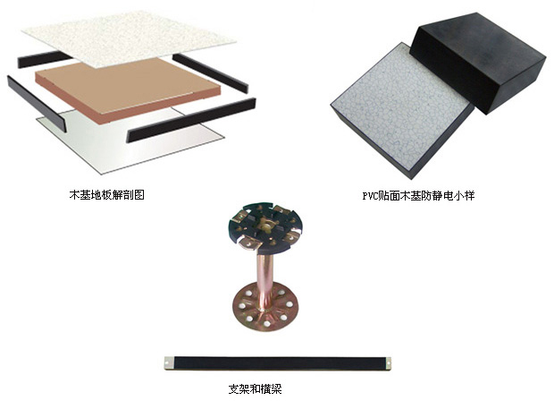 1、采用優質加厚刨花極芯基材或MDF基材,表面PVC貼面,四邊粘導靜電膠條,底面采用壓花鋁箔或鍍鋅鋼板。橫梁選用鋼材模壓成型,支座絲桿可任意調節高度。